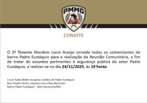 O convite é assinado pelo 2º tenente Mardem Lúcio Araújo, comandante do policiamento no setor Padre Eustáquio.